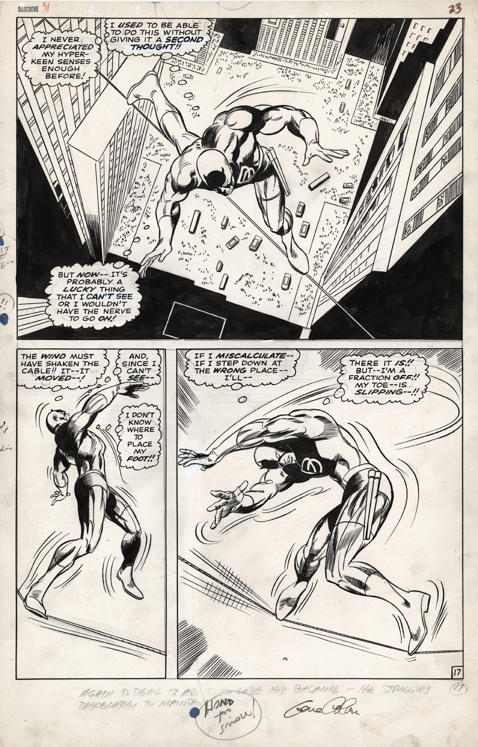Fun facts about this great Daredevil half-splash from Gene Colan: