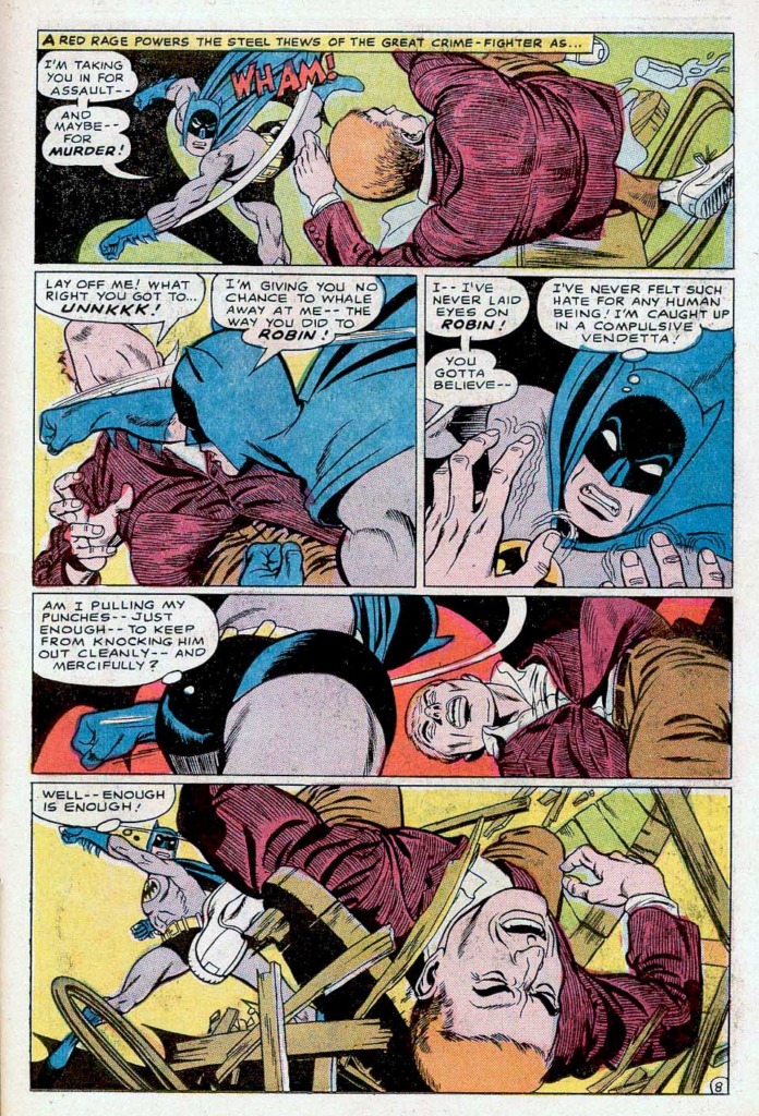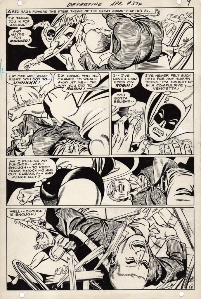 When Gil’s heroes—or villains—cut loose, the poor victim didn’t just get hit. They came flying out of the panel toward you, arms and legs flailing, like they were trying (and failing) to stop themselves from being launched right out of the comic book.