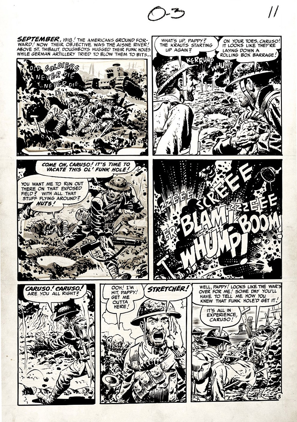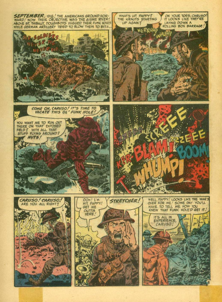 This is a great Wallace Wood war page, from the classic EC Comics WWI story: “Old Soldiers Never Die.” (Two-Fisted Tales #23.)